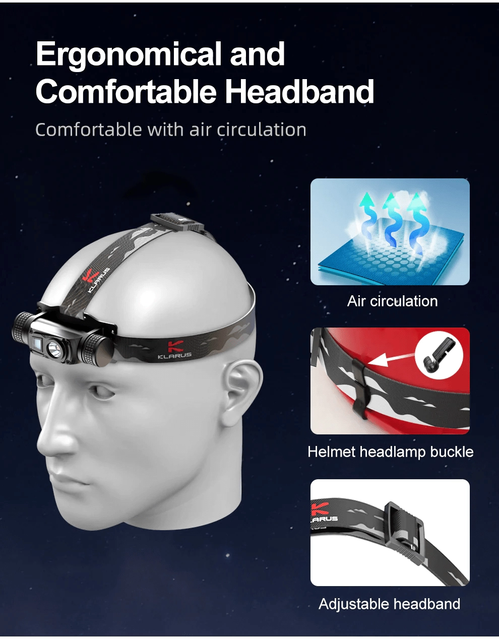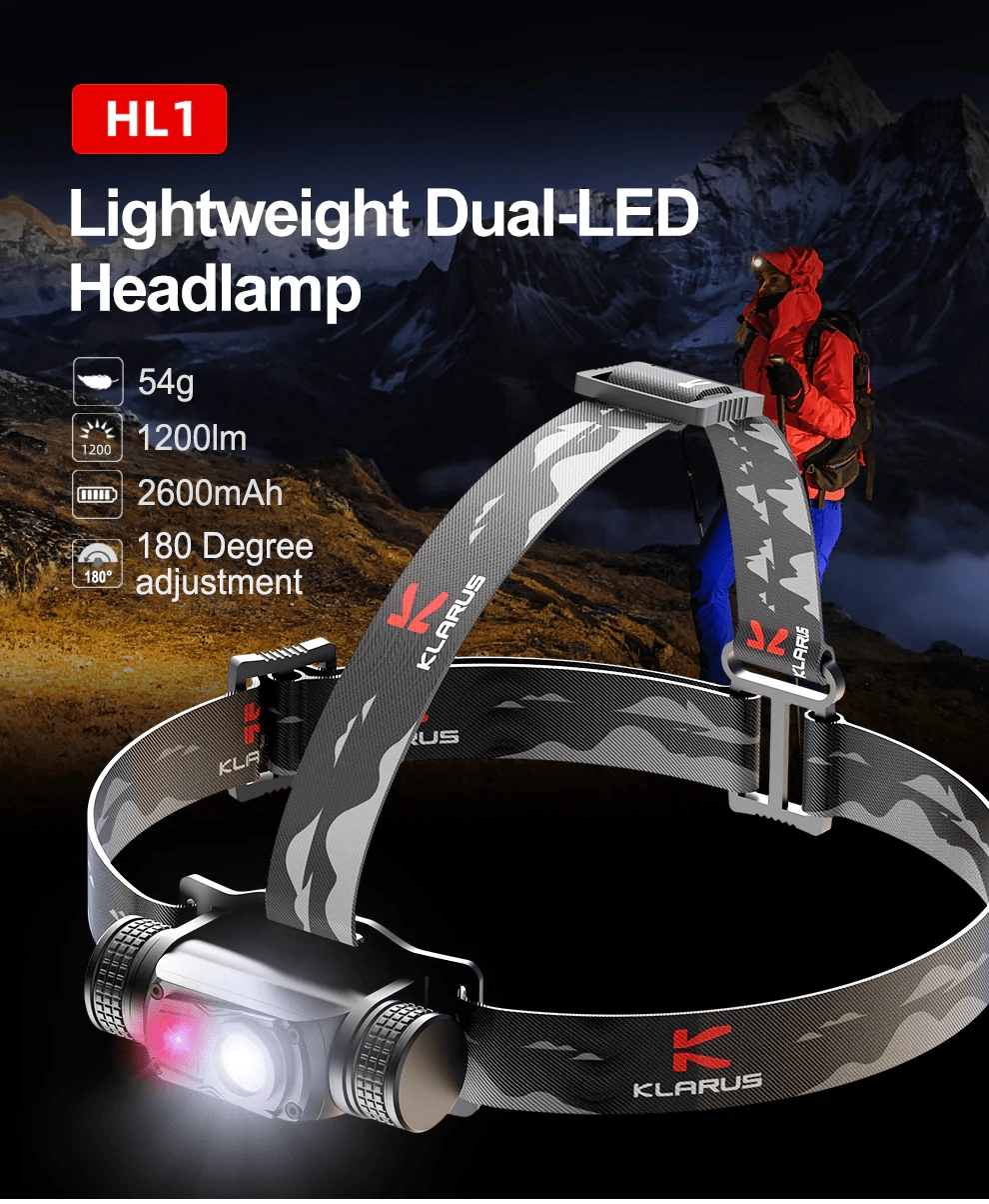 Klarus HL1 er en alsidig pandelampe til outdoor og arbejde, som kombinerer høj lysstyrke, lang driftstid og komfortabel betjening. Hoved-LED’en leverer klart koldt hvidt lys til langtrækkende spot, sideplaceret COB-LED i dagslysfarve 4000K spreder en behagelig bred lyskegle til nærområdet, og den røde LED bruges til diskret belysning, signalering og SOS.