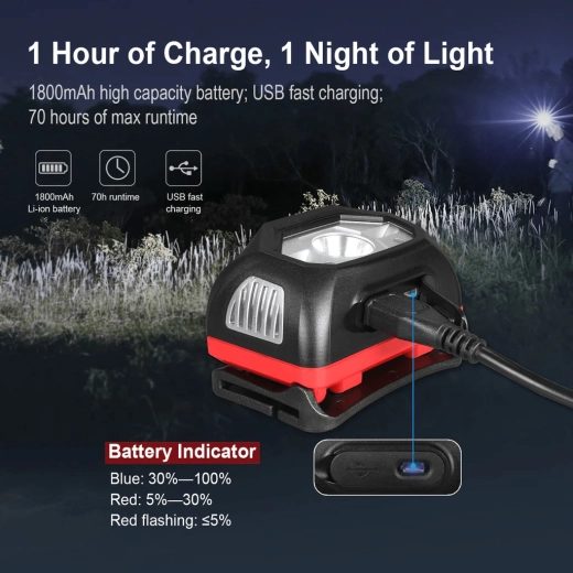 Leder du efter en let og robust pandelygte til arbejde og fritid? Klarus HM1 Red kombinerer en kraftig Cree XP-G3 LED med gennemtænkt optik – reflektor + flood og en justerbar lysvinkel på 60° for perfekt overblik i mørket. Takket være hurtig opladning og lang driftstid er den ideel til natløb, vandreture, fiskeri og krævende arbejde.