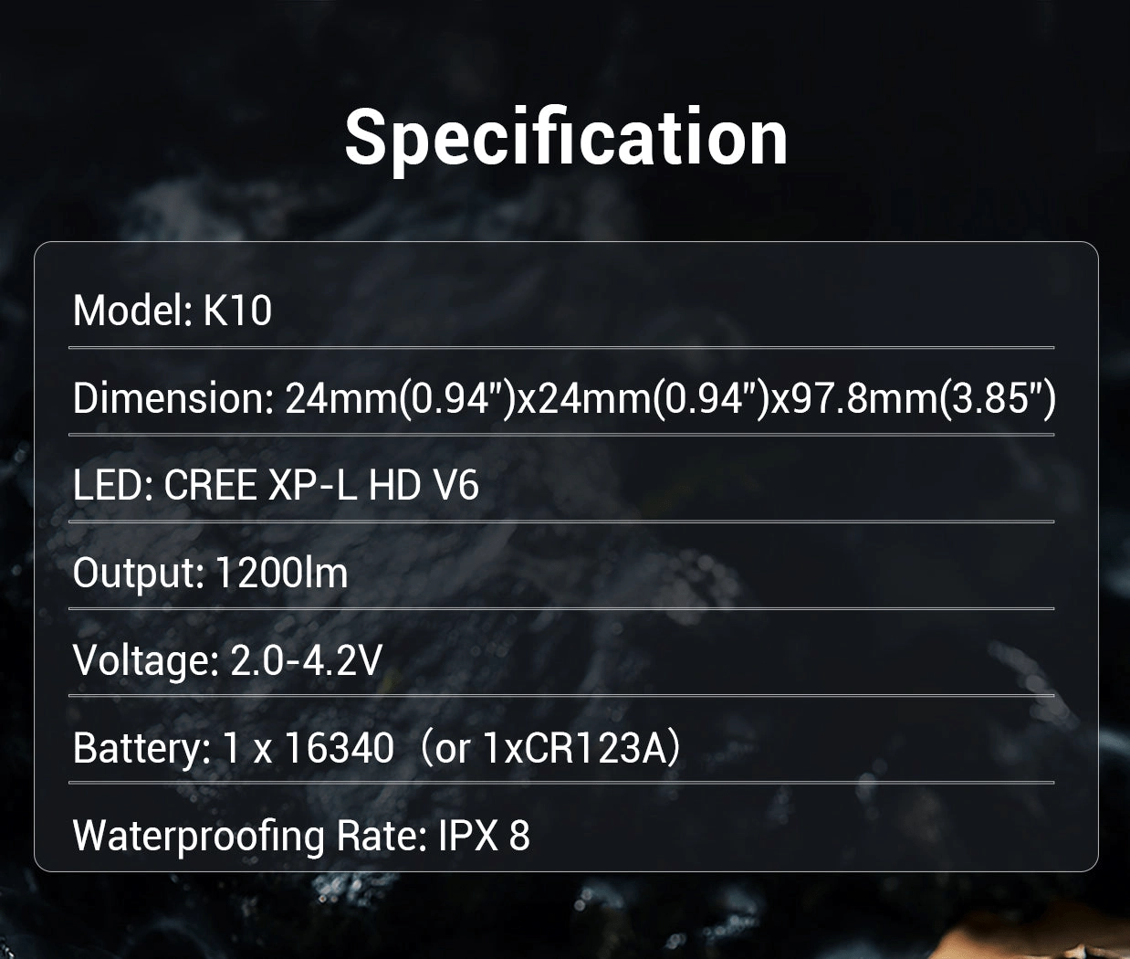 Klarus K10 i limited edition til 10-års jubilæet leverer en kraftig og pålidelig lyskilde i lommeformat. Takket være LED CREE XP‑L HC V6 opnår den en lysstrøm på op til 1200 lumen og en rækkevidde på 185 meter, hvilket gør den til et ideelt valg til taktisk brug såvel som udendørsaktiviteter.