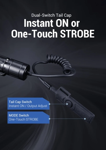 Leder du efter sikkerhed og hastighed i betjeningen af en taktisk lygte? Klarus TRC1 tilbyder en intuitiv to-knaps opsætning: den runde til fuld effekt 100 % (momentan og konstant tænding) og den aflange til øjeblikkelig aktivering af stroboskop blot ved at holde inde. Dermed får du maksimal kontrol i både kritiske og outdoor-situationer.