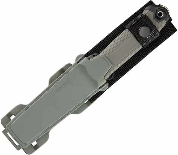 Det teksturerede skæfte af GFN (glasfiberforstærket nylon) ligger godt i hånden selv i vådt vejr og giver et sikkert greb. Det integrerede øje til paracord udvider mulighederne for fastgørelse og sikring. Medfølgende er en robust plastskede med modulært monteringssystem og fuld MOLLE‑kompatibilitet – til både vandret og lodret bæring på bælte, rygsæk eller udstyr.