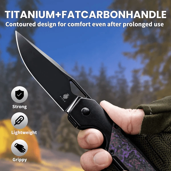 Den elegante EDC-kniv KIZER Militaw forener en klassisk drop point-form med et moderne design og førsteklasses materialer. Den tilbyder CPM-S45VN-stål med DLC-belægning for langvarig skarphed og holdbarhed, hurtig åbning med flipper og tommelfingerhul samt tryghed med framelock-lås. Det titaniummede skæfte med Fatcarbon Purple Haze og dybbæret lommeklip gør kniven til et ideelt valg til hverdagsbrug, værksted og outdoor.