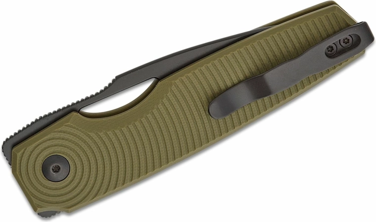 Åbningen er hurtig og intuitiv via hul i bladet eller knap, mens den pålidelige Button Lock låser bladet sikkert i arbejdsposition. G10-skæftet i grøn sikrer et sikkert greb og komfort selv ved længere tids brug, mens lommeklippet muliggør diskret bæring.