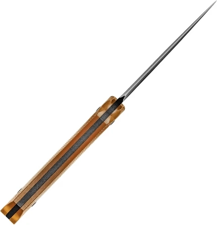 KIZER Harpoon Mini er udviklet i samarbejde med Maverick Customs og tilbyder en fremragende balance mellem størrelse, ydeevne og håndtering. Drop point-klingen med glat skær er designet til præcise snit, udskæring og lette bushcraft-opgaver. CPM-3V-stålet er kendetegnet ved høj sejhed og langvarig skarphed, mens den sorte overflade hjælper med at reducere reflekser og øger slidstyrken.