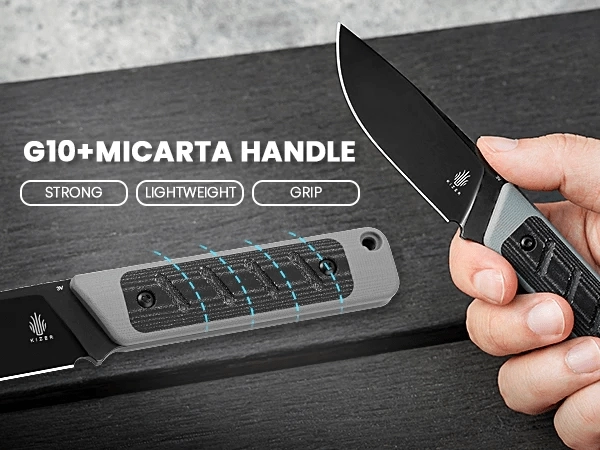 Leder du efter en pålidelig EDC-kniv, der også klarer krævende arbejde i felten? Kizer Smolt kombinerer kompakte mål med robust konstruktion. Drop Point-klingen i 3V-stål med sort finish giver fremragende holdbarhed og langvarig skarphed, ideel til daglige skæreopgaver, madlavning og fint lejrarbejde.