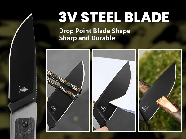 Den sort overfladebehandlede klinge i værktøjsstål 3V tilbyder fremragende sejhed, slidstyrke og pålidelig skæreevne til både EDC og outdoor-brug.