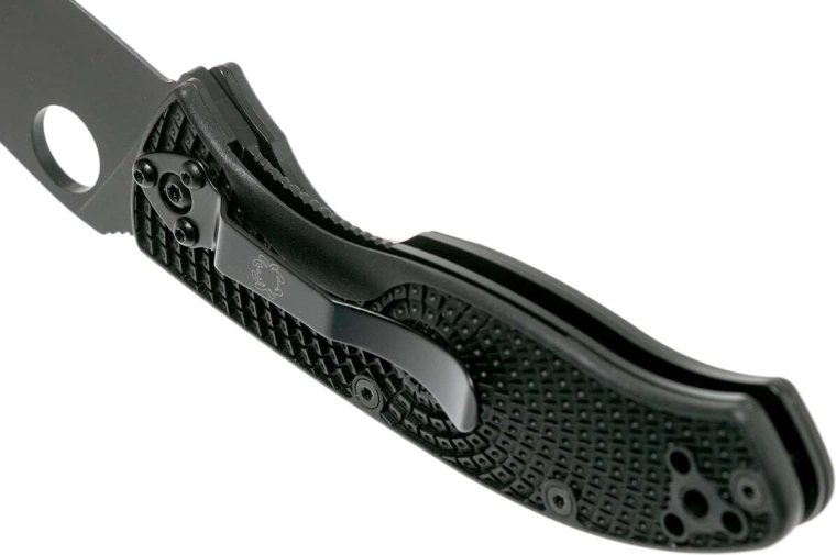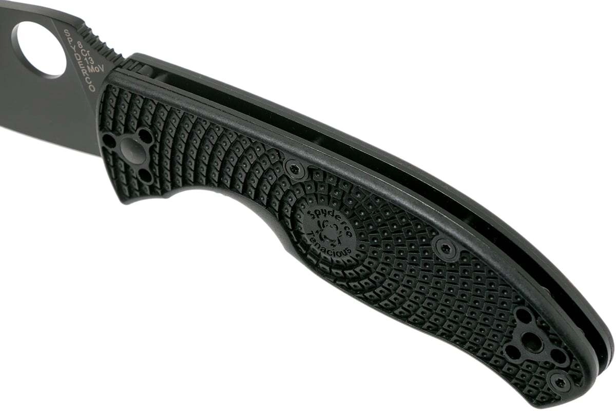 Spyderco Tenacious Lightweight med sort klinge er en alsidig lommekniv designet til daglig bæring. Klingen i Drop Point af rustfrit stål 8Cr13MoV med sort oxidfinish sikrer et diskret udseende, færre reflekser og solid korrosionsbestandighed. Takket være det karakteristiske runde Spyderco-hul kan kniven nemt åbnes med én hånd.