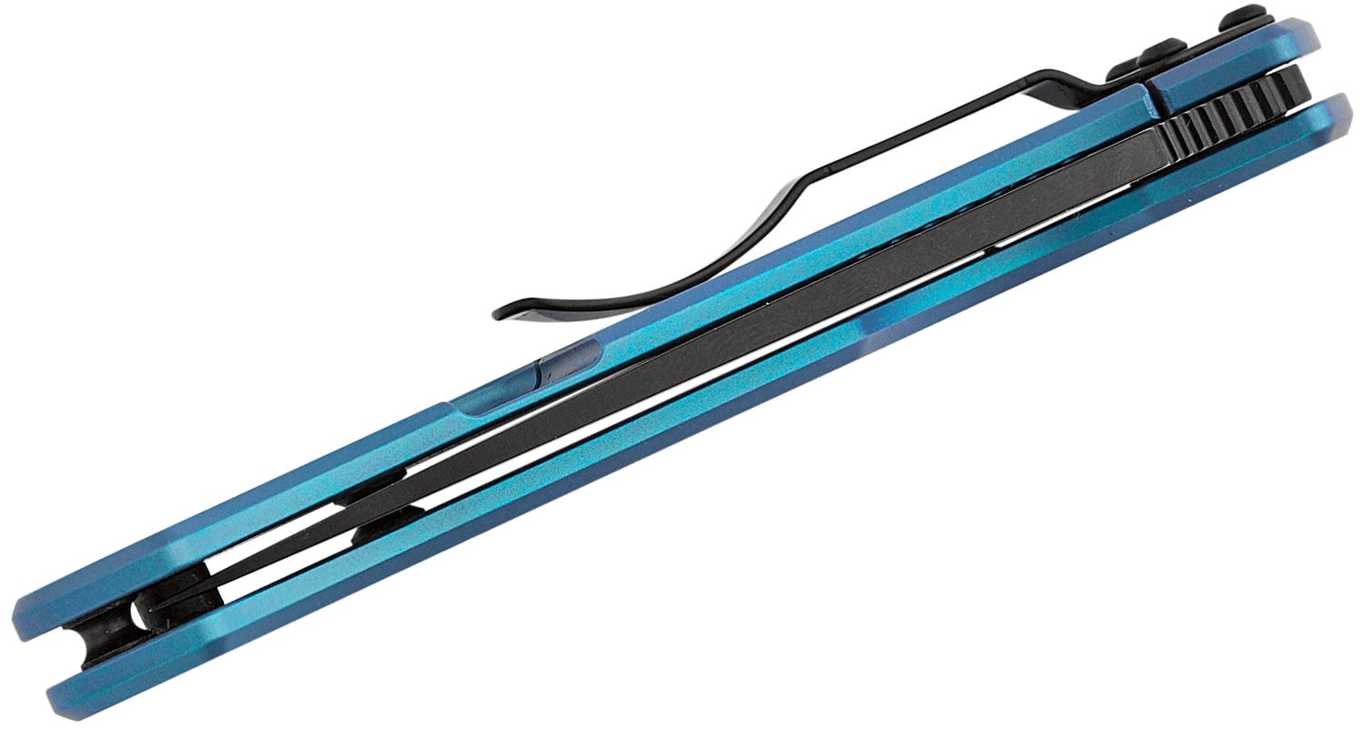 Det blå titaniumskaft er stærkt, let og yderst slidstærkt. RIL (Reeve Integral Lock) holder klingen sikkert under brug, mens den 4-positions lommeclip muliggør bæring spids op/ned, højre/venstre. Bageste snorhul gør det nemt at sikre kniven og trække den hurtigt op af lommen.