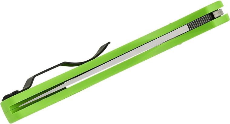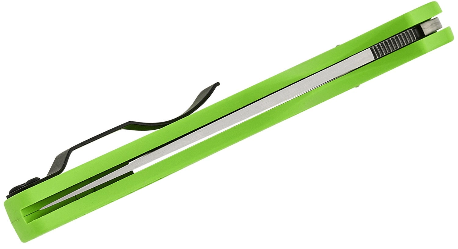 Håndtaget i fiberforstærket nylon (FRN) i neongrøn giver sikkert greb selv i vådt miljø og holder samtidig vægten nede. Back Lock-låsen sikrer tryg anvendelse, og den firesidede reversible lommeclip muliggør bæring tip-up/tip-down, venstre eller højre.