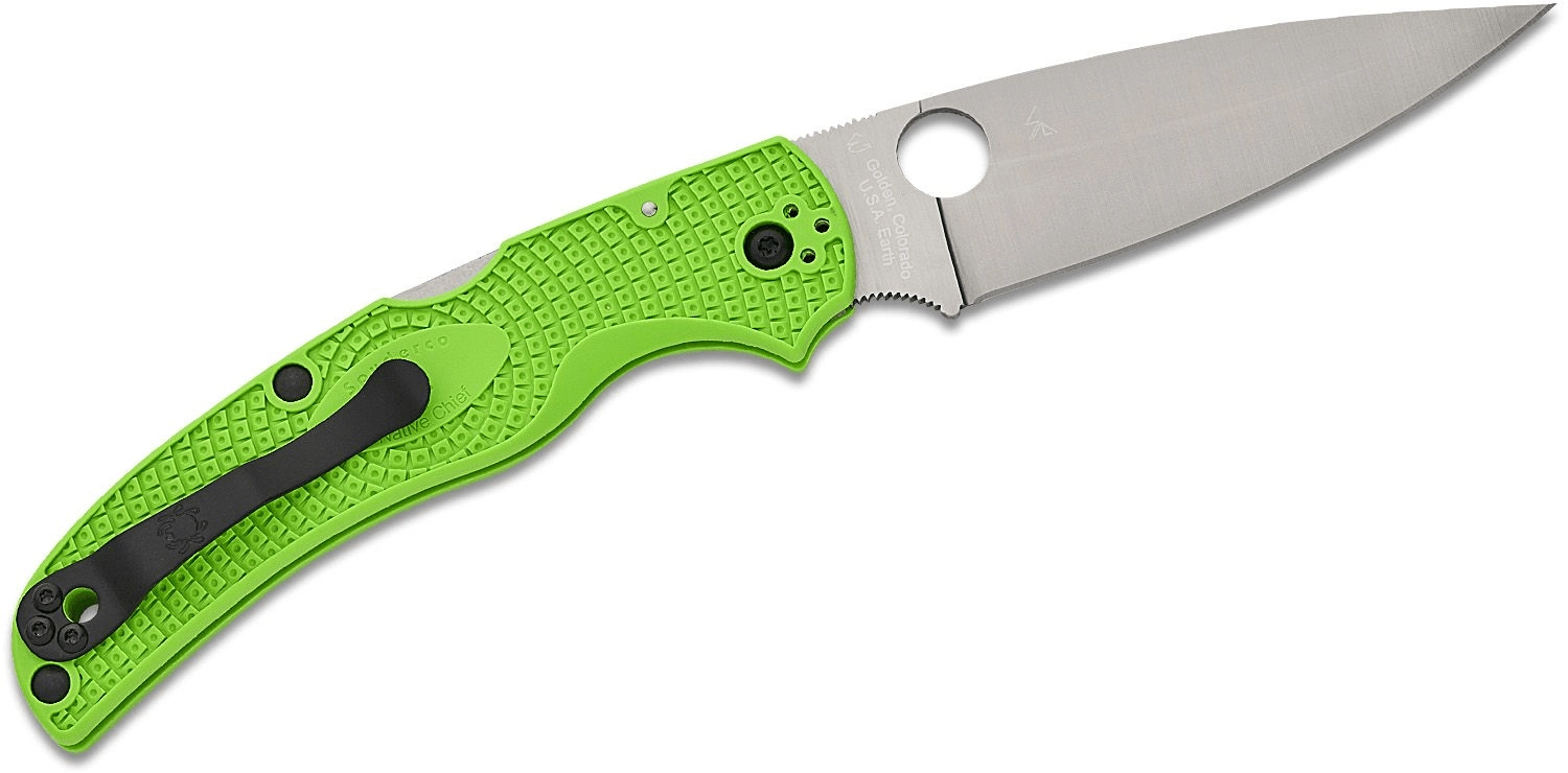 Den lette og robuste foldekniv Spyderco Native Chief Salt er skabt til fugtige og salte miljøer såvel som daglig brug. Den byder på ekstremt korrosionsbestandigt stål LC200N med fladt slib, nem enhåndsbetjening via tommelhul og en pålidelig Back Lock-lås. Den teksturerede neongrønne FRN-skæfte er let, stærk og har en firesidet reversibel clip for maksimal bærefleksibilitet.