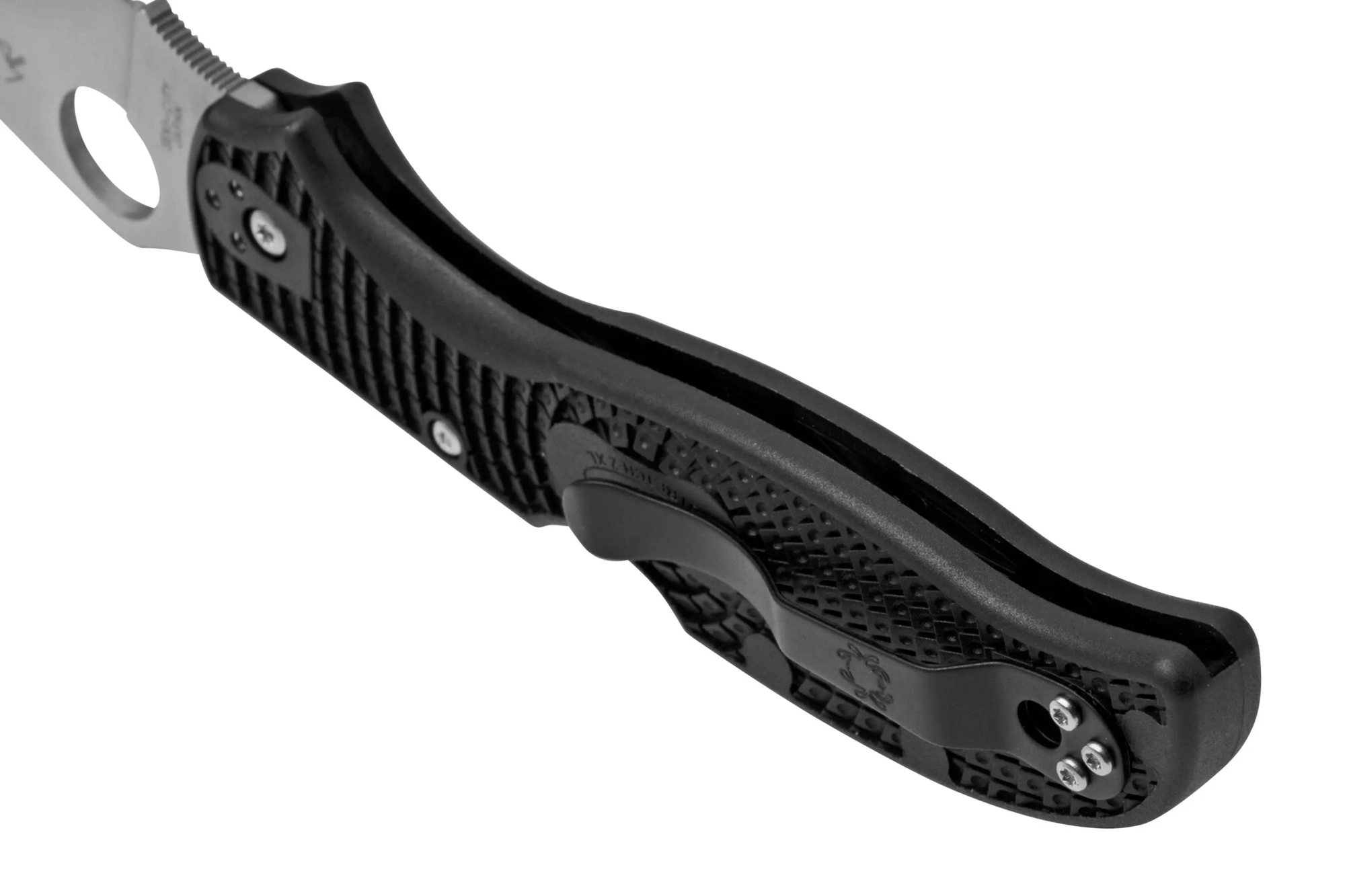 Let og pålidelig foldekniv til hverdagsbrug (EDC) Spyderco Stretch 2 XL tilbyder en klinge af VG-10-stål med satinfinish, nemt en-hånds åbningshul, sikker Back Lock-lås og et ergonomisk FRN-skæfte med tekstur for et sikkert greb.