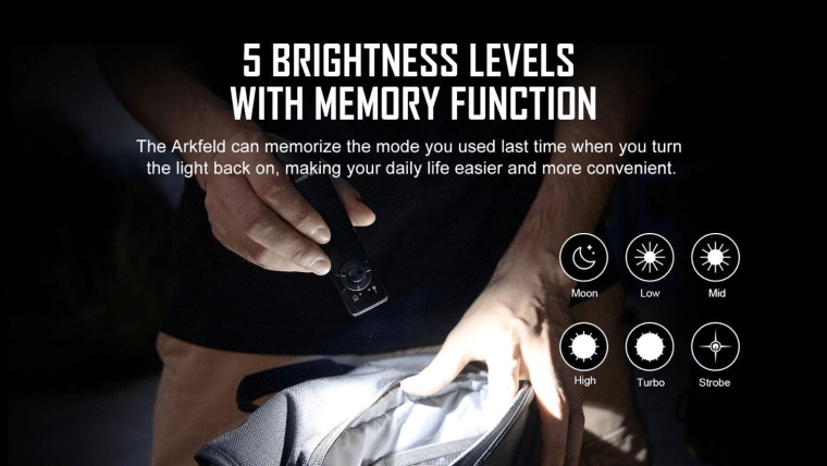 Centralknappen og tilstandsvælgeren muliggør hurtig skift mellem fem lysstyrkeniveauer. Hukommelsesfunktionen gemmer din seneste indstilling.