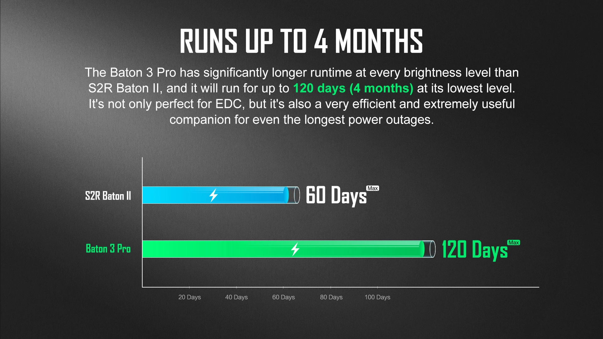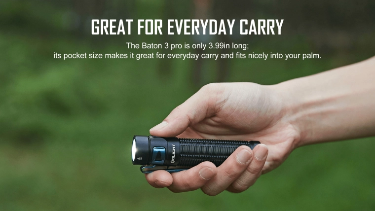 OLIGHT Baton 3 Pro CW er en kraftig, men lommevenlig lygte, ideel til hverdagsbrug, arbejde og outdoor. Den leverer en lysstyrke på 1.500 lm med en rækkevidde på 175 m og en ekstrem driftstid på op til 120 dage i lave tilstande. Takket være de kompakte mål (længde 10,13 cm) og vægten på 103 g passer den nemt i håndfladen, lommen eller rygsækken.