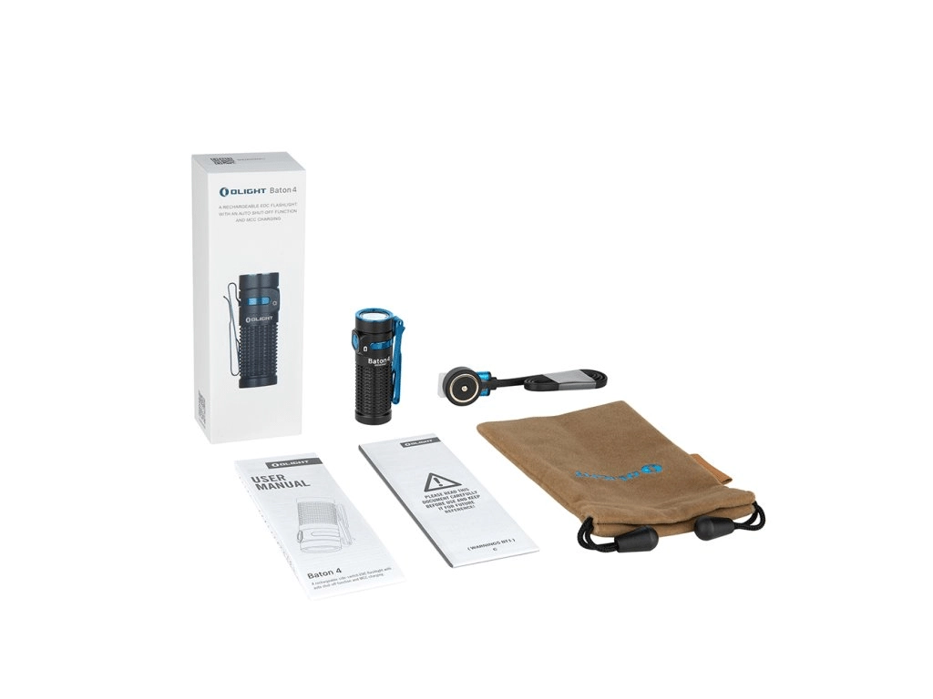 - Olight Baton 4 Black 1300 lm lommelygte, magnetisk opladningskabel MCC 1A, etui, manual