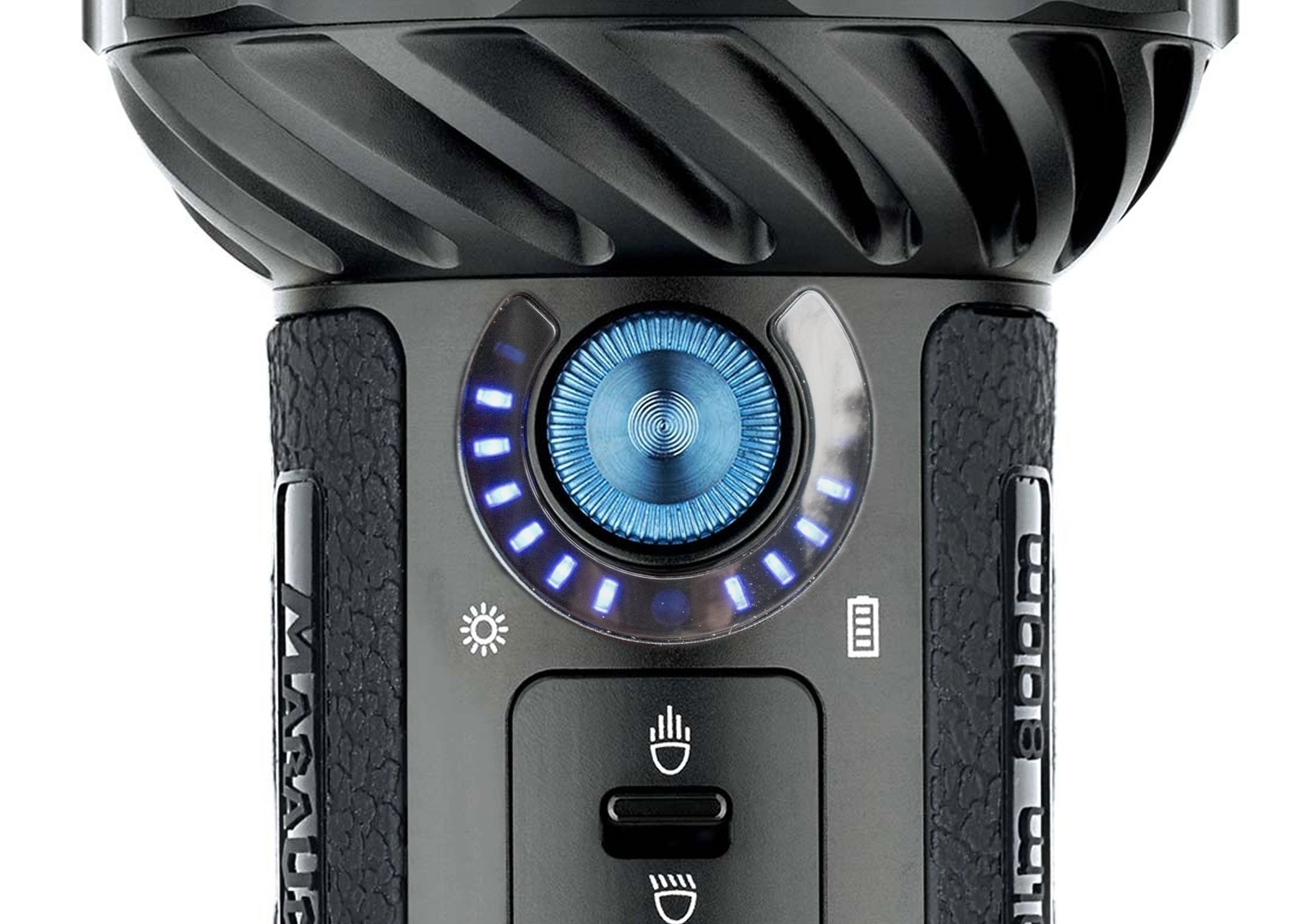 Leder du efter en lommelygte til krævende forhold, eftersøgning og udendørs eventyr? Olight Marauder 2 kombinerer ekstrem lysstyrke på op til 14.000 lm med en strålerækkevidde på 800 m. Med én betjening skifter du nemt mellem bredt flood‑lys og smal langtrækkende spot, der er 7 lysniveauer og stroboskop. Tydelige LED‑indikatorer informerer om valgt effekt og batteristatus.