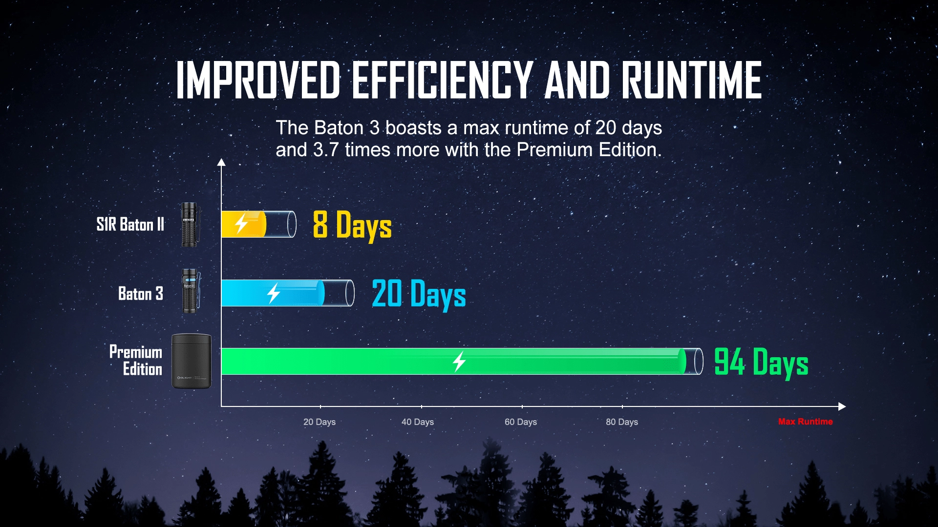 - 5 lysniveauer + stroboskop til enhver situation (op til 20 dage driftstid i Moonlight-tilstand).