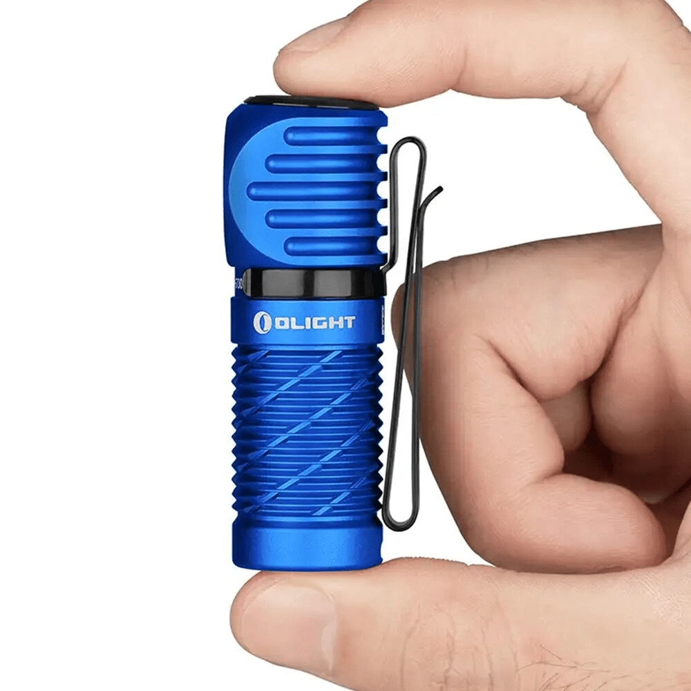 Kompakt pandelygte og EDC-lygte OLIGHT Perun 2 Mini Blue CW tilbyder op til 1.100 lm, rækkevidde 150 m og rødt lys for at bevare nattesynet. Takket være magnetisk opladning, magnetisk bagende og drejeligt 180°-holder giver den bekvem hands-free brug hjemme, udendørs og på arbejde. Inkluderer genopladeligt batteri 650 mAh IMR16340 med driftstid op til 10 dage.