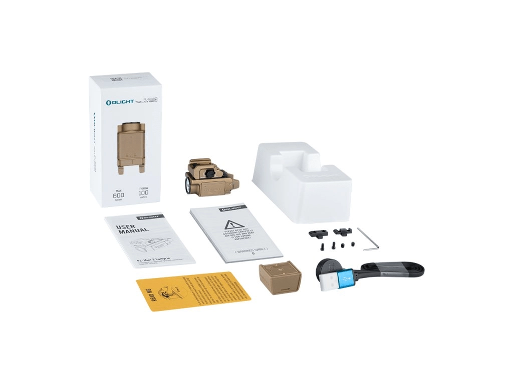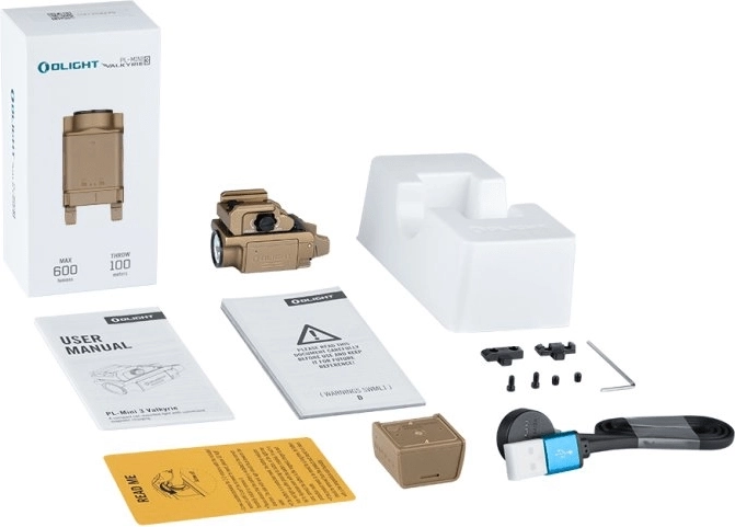 Det kompakte pistollys OLIGHT PL‑Mini 3 Valkyrie i farven Desert Tan tilbyder lysudbytte på 600 lm, rækkevidde på 100 m og hurtigmontering uden værktøj. Takket være to‑sidede kontakter, stroboskop og magnetisk opladning er det ideelt til taktisk brug og personlig beskyttelse.