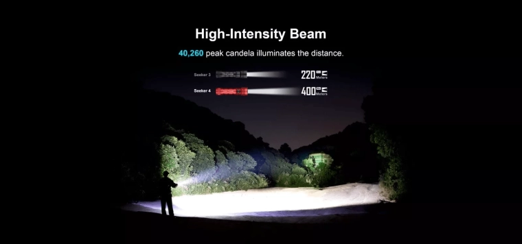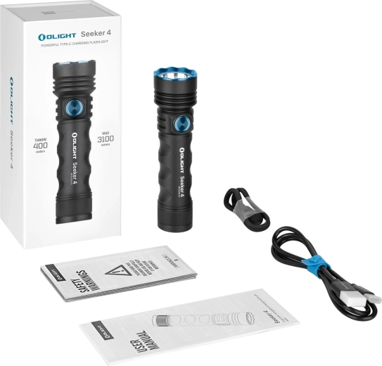 Olight Seeker 4 Matte Black er en kraftfuld EDC‑lygte, der kombinerer en robust konstruktion i flyaluminiumslegering med praktisk betjening og førsteklasses lysydelse. Med lysstrøm op til 3100 lm, intensitet 40.260 cd og rækkevidde 400 m skærer den ubesværet gennem mørket og giver en ren, jævn lyskegle.
