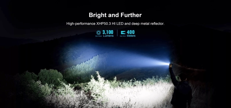 • Ekstrem ydeevne 3100 lm og lang rækkevidde på 400 m.