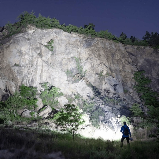 Hus i aluminiumslegering, skridsikker fræsning og vandtæthed IPX8. Lygten klarer krævende miljøer og regn og giver tryghed i felten.