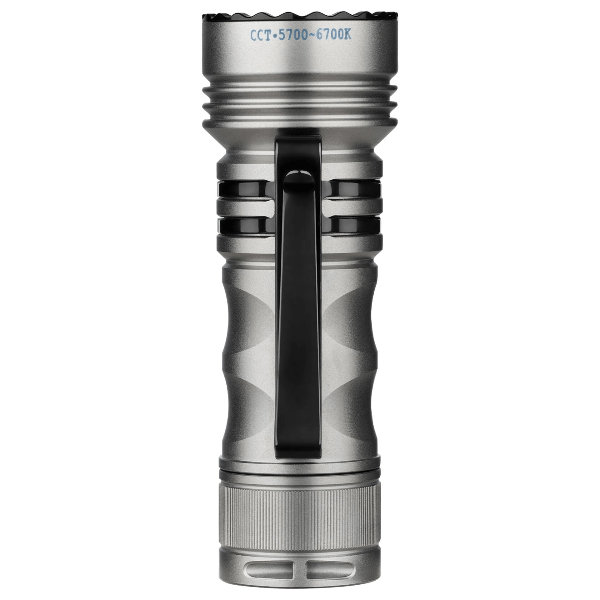 Avanceret strømstyring opretholder stabil lysstyrke i den valgte tilstand, og overophedningsbeskyttelsen reducerer intelligent effekten til 600 lm efter 3 minutter på turbo for længere levetid. Magnetisk opladning via MCC1A er hurtig og bekvem – fra 0 til fuld på cirka 1,5 time. Den dobbeltsidede clip og det skridsikre hus giver sikkert greb og nem bæring.