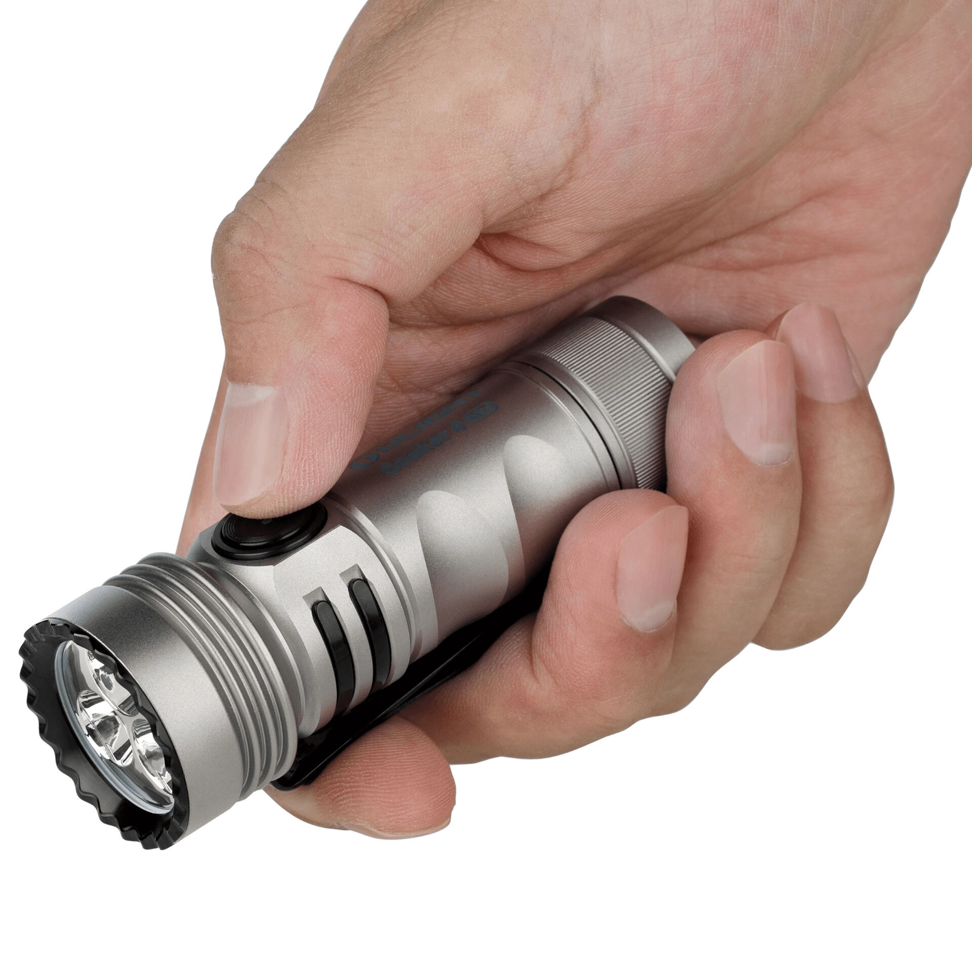 Seeker 4 Mini i en begrænset titaniumudgave er en usædvanligt robust EDC-lygte med to lyskilder – en kraftig kold hvid LED (5700–6700 K) og præcis UV 365 nm til detektion af fluorescerende spor, dokumentverifikation og renhedskontrol. Takket være de kompakte mål passer den let i lommen, på rygsækremmen eller i rejseudstyret.