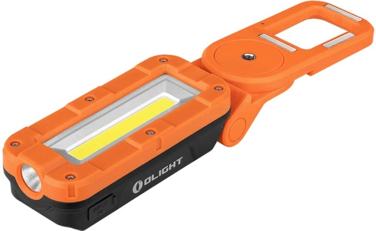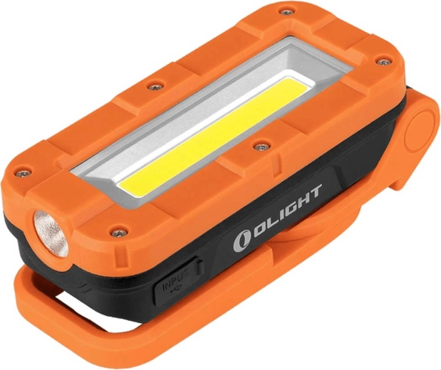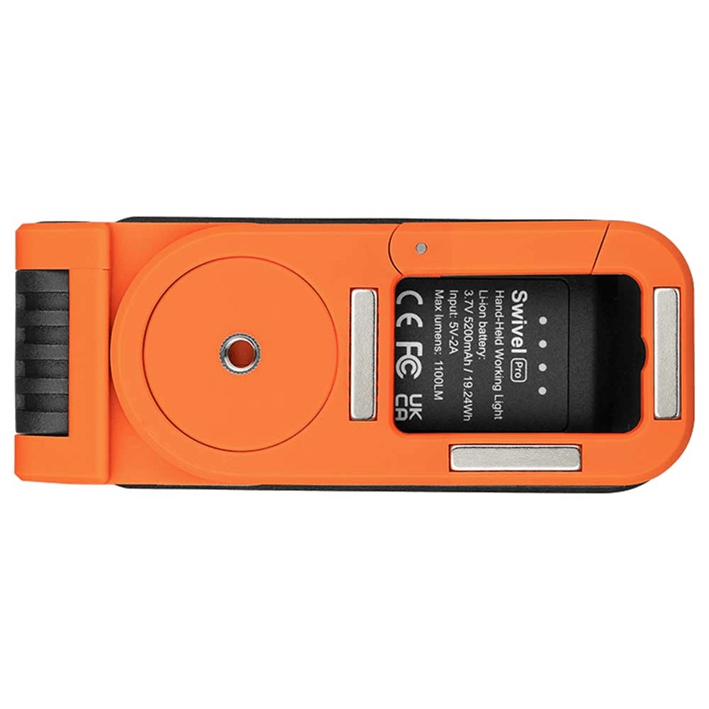 OLIGHT Swivel Pro er en alsidig, robust og yderst praktisk lyskilde til arbejde og fritid. Det brede COB‑panel giver jævn belysning af store områder, mens LED‑spotten leverer en præcis lysstråle dér, hvor der er behov. Med det robuste orange‑sorte hus, dækket USB‑C‑port og pålidelige Li‑ion batteri på 5200 mAh er den klar til daglig brug under krævende forhold.