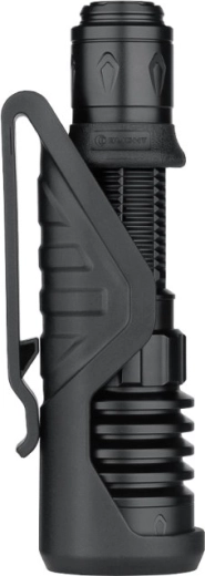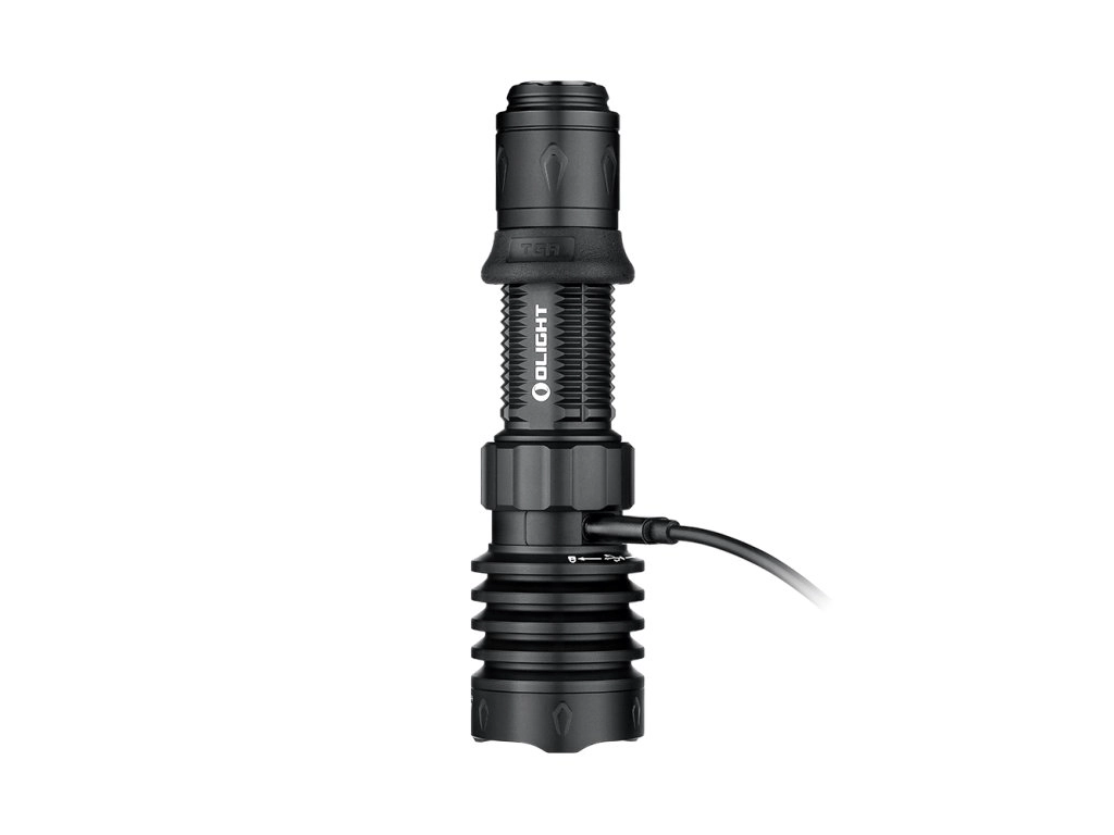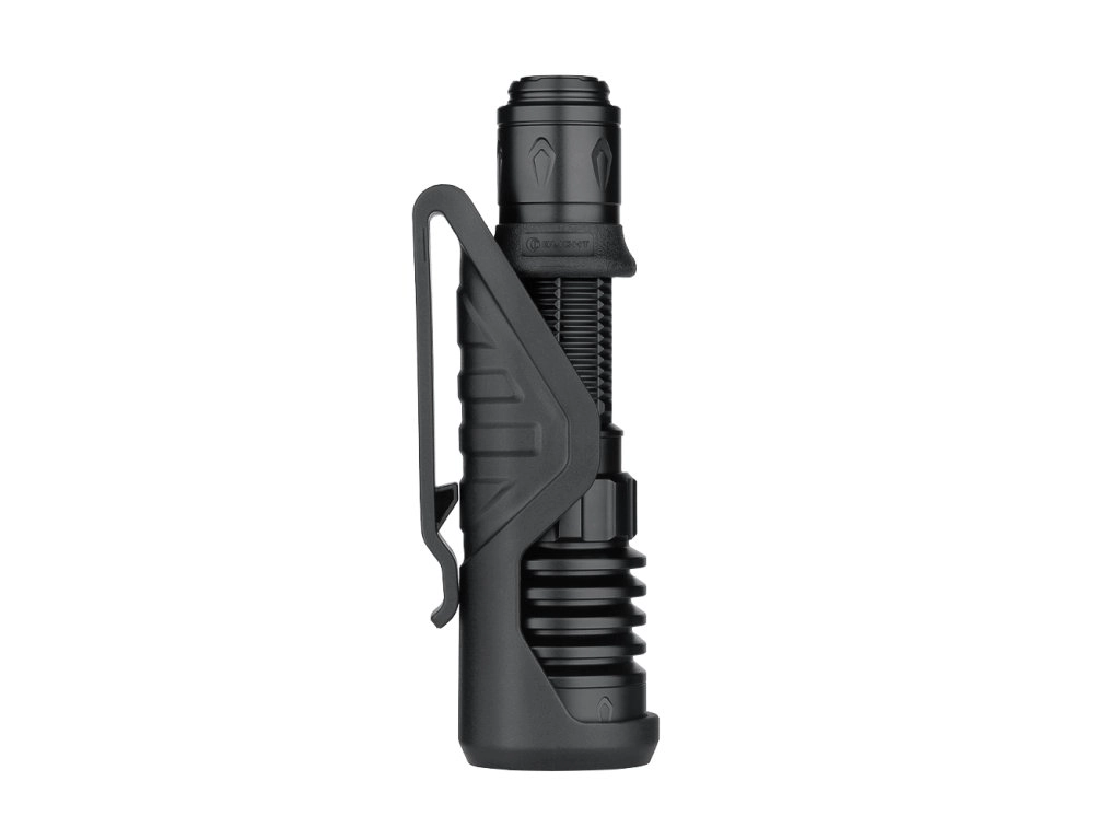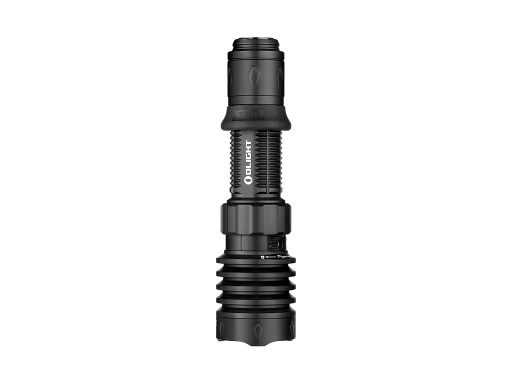 Den slidstærke aluminiums konstruktion med tekstureret riffelering og en taktisk kontakt i enden muliggør pålidelig betjening selv med handsker på.