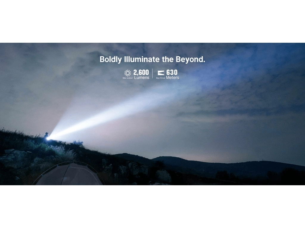 Maksimal lysstyrke på 2600 lumen og en strålerækkevidde på op til 630 meter giver sikker synlighed selv i krævende terræn og i totalt mørke.