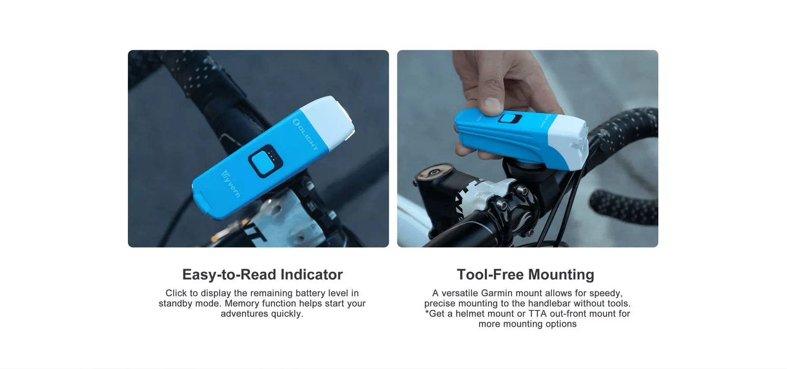 OLIGHT Wyvern Blue er et stilfuldt og holdbart cykellys designet til landevej, bykørsel og pendling. En højtydende LED med maksimum på 300 lm skaber en jævn lysstråle med lav blænding, som ikke generer modkørende. Sideudskæringer øger synligheden fra siderne og forbedrer sikkerheden i trafikken.