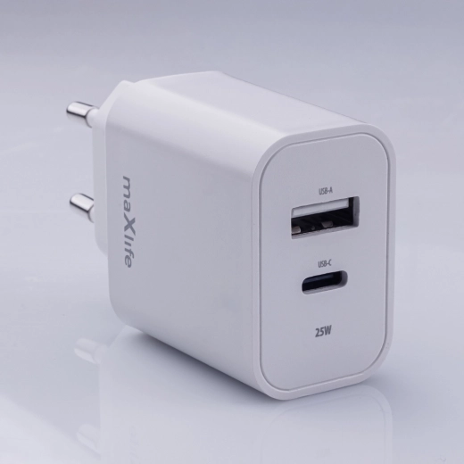 Nyd hurtig og effektiv opladning til dine daglige enheder. Maxlife-laderen med 25 W understøtter moderne hurtigopladningsprotokoller og gør det muligt at oplade to enheder på én gang via USB‑C og USB‑A – uden unødig ventetid.