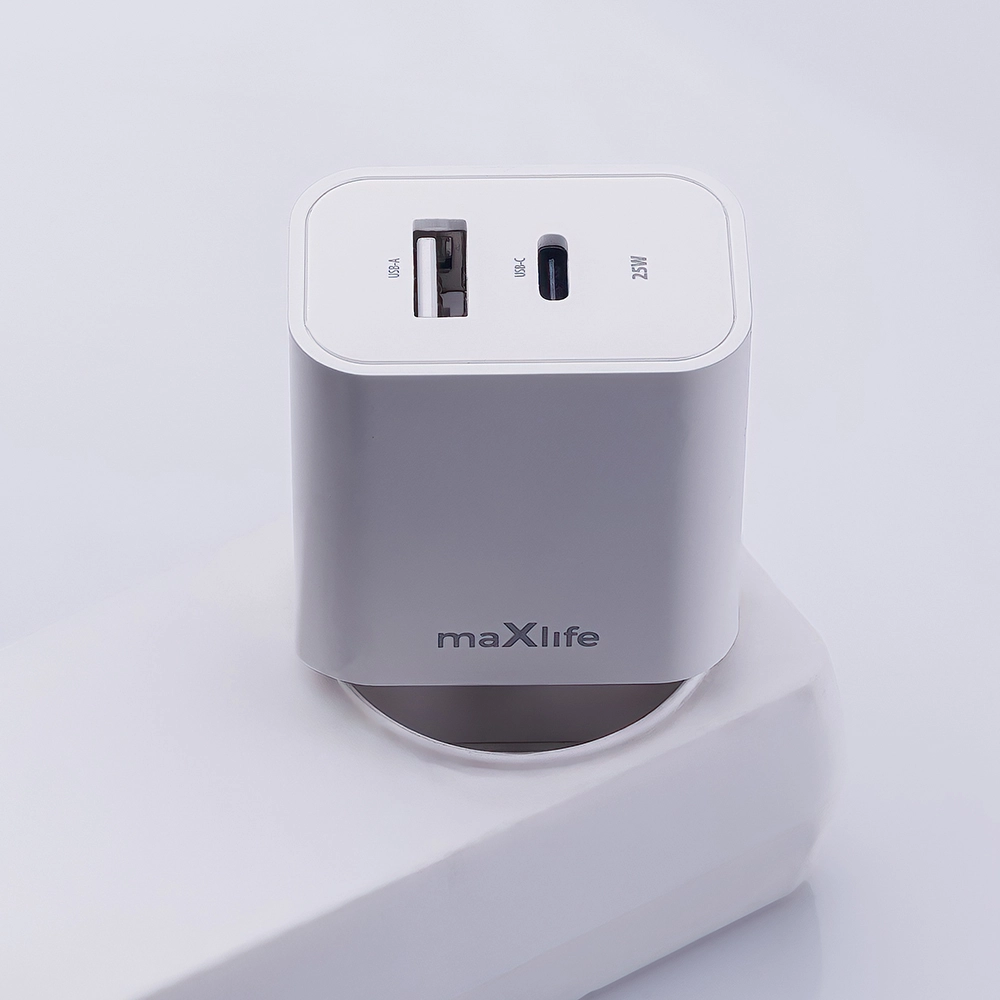 Den kompakte Maxlife væglader med effekt på 25 W tilbyder hurtig opladning via USB‑C- og USB‑A-porte, så du nemt kan forsyne to enheder samtidig. Bred kompatibilitet og avancerede sikkerhedssystemer sikrer pålidelig og tryg drift for smartphones, tablets og andet tilbehør.