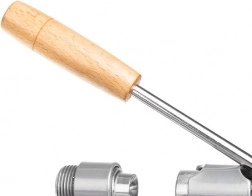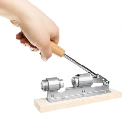 Den stabile træbase holder værktøjet sikkert på bordpladen, så knækningen er hurtig, præcis og sikker. Betjening ovenfra kræver mindre kraft end klassiske tang-nøddeknækkere og gør arbejdet lettere selv ved længere tids brug.