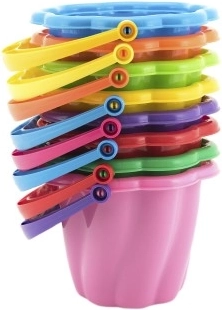 Nyd timevis af sjov på stranden og i sandkassen med en let og holdbar spand af kvalitetsplast. Takket være den bølgede kant og det praktiske håndtag er den nem for børn at holde og bære, både med sand og vand. Spanden er ideel til de første lege med sand og til at styrke finmotorikken.
