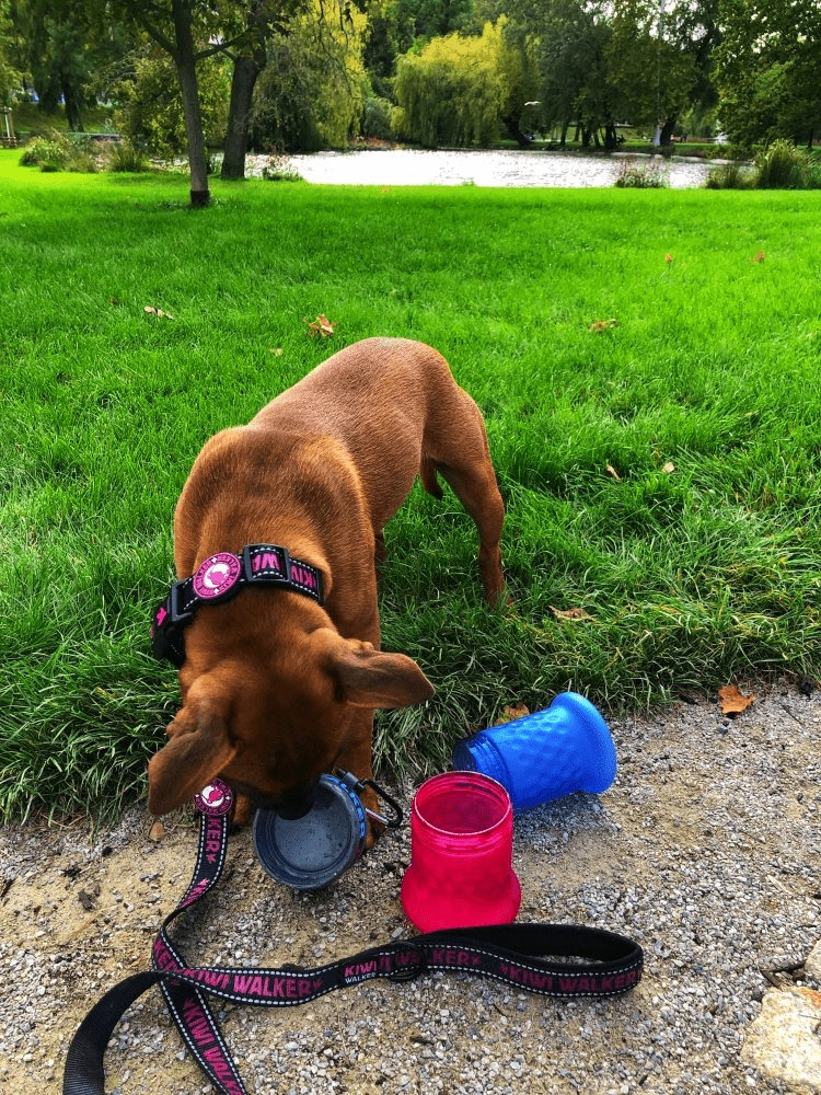 Topdelen fungerer som en praktisk vandskål, så du nemt kan give dit kæledyr vand i parken eller på legepladsen.