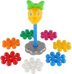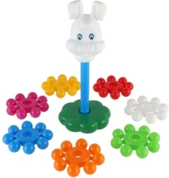 Brede, farverige ringe ligger godt i børns hænder og glider let på midterstangen. Legen styrker præcisionen i bevægelserne og træner øje–hånd-koordinationen allerede fra de første skridt.
