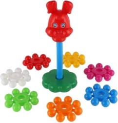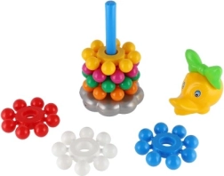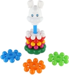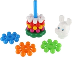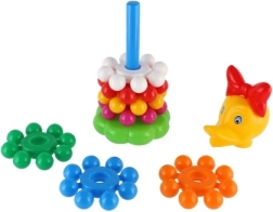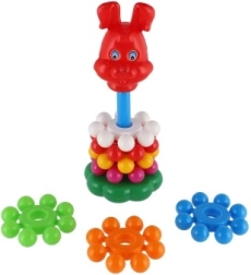 Denne legesyge plastpyramide med ringe er det ideelle første didaktiske legetøj til de mindste. Børn griber let ringene og stabler dem på stangen, hvorved de naturligt træner finmotorik, koordinationsevner samt skelnen mellem farver og størrelser. Takket være højden på 26 cm er tårnet stabilt, let at se og indbyder til gentagen afprøvning.