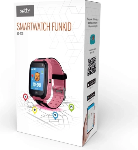 Smarte børneur Setty FunKids SD-100 i lyserød kombinerer sikkerhed, sjov og nem betjening. Med LBS-lokator, lyttefunktion og SOS-knap har du overblik over barnets position og situation. Der er også touchskærm, chat, fjernkamera, lommelygte og et matematisk spil. Batteriet på 400 mAh holder op til 3 dage i standby, og uret er kompatibelt med både Android og iOS.