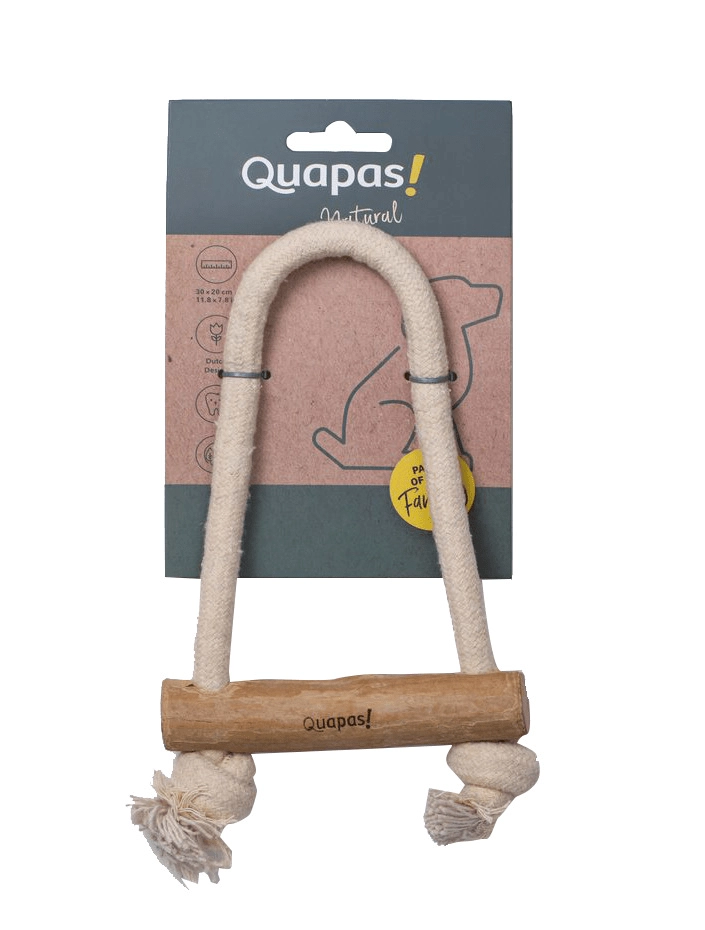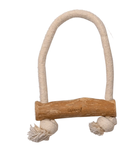 Oplev et holdbart og miljøvenligt hundelegetøj, der forener naturligt kaffetræ med et stærkt bomuldstov. Quapas! Pull er ideelt til fælles trækkeleg, apportering og selvstændig tygning og hjælper med at vedligeholde hundens mundhygiejne helt naturligt.