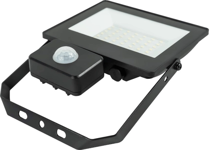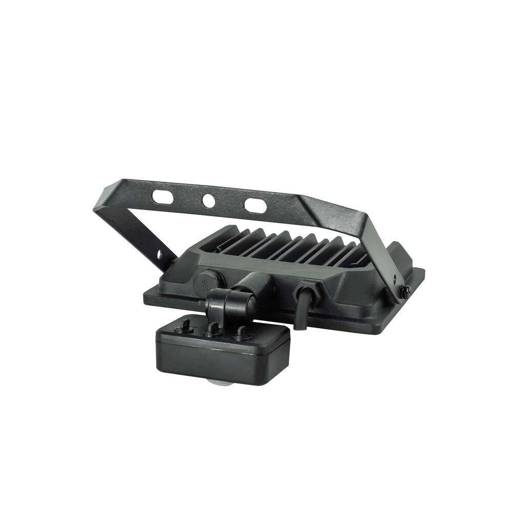 Kraftig udendørs LED-projektør Modee A3-serien med sensor tilbyder 30 W effekt, 3000 lm lysstrøm og neutral hvid 4000 K for klar og jævn belysning. Den brede strålevinkel på 120°, det robuste aluminiumshus, klassificering IP54 og en levetid på op til 25.000 t gør denne projektør til et pålideligt og energieffektivt valg til haver, terrasser, indkørsler eller lagre.