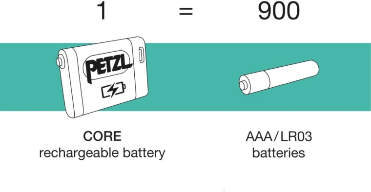 CORE‑batteri 1250 mAh med opladning via USB‑C er inkluderet. Takket være HYBRID CONCEPT kan der også bruges 3× AAA‑batterier (ikke inkluderet). Pandelampen genkender automatisk strømkilden og tilpasser ydelsen.