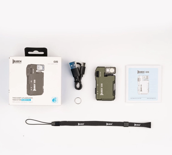 - G5 lommelygte, USB‑C-kabel, nøglering, håndledsstrop