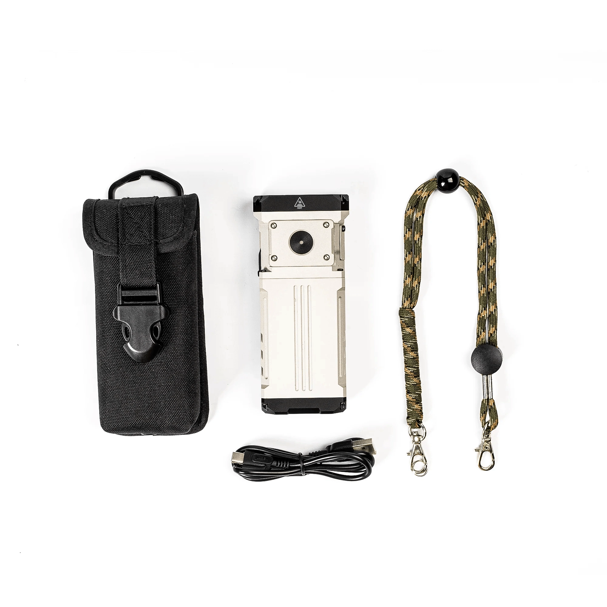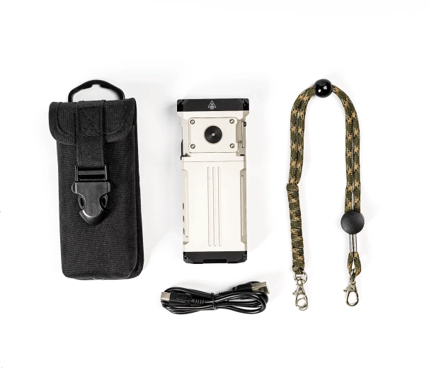 - X1 lommelygte, USB‑C-kabel, etui, paracord-snor