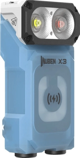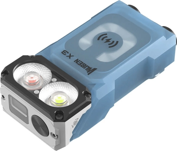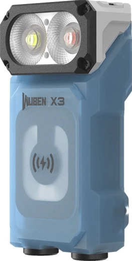 Wuben X3 Blue er en ideel lommelygte til hverdagsbrug og outdoor. Den primære LED Samsung LH351D leverer op til 700 lumen med en rækkevidde på 102 meter, mens den supplerende røde LED Luminus SST10 lyser med op til 80 lm for at bevare nattesynet. Den indbyggede LCD-skærm viser tydeligt batteristatus og valgt tilstand, og det 180° drejelige hoved gør det nemt at rette lyset.