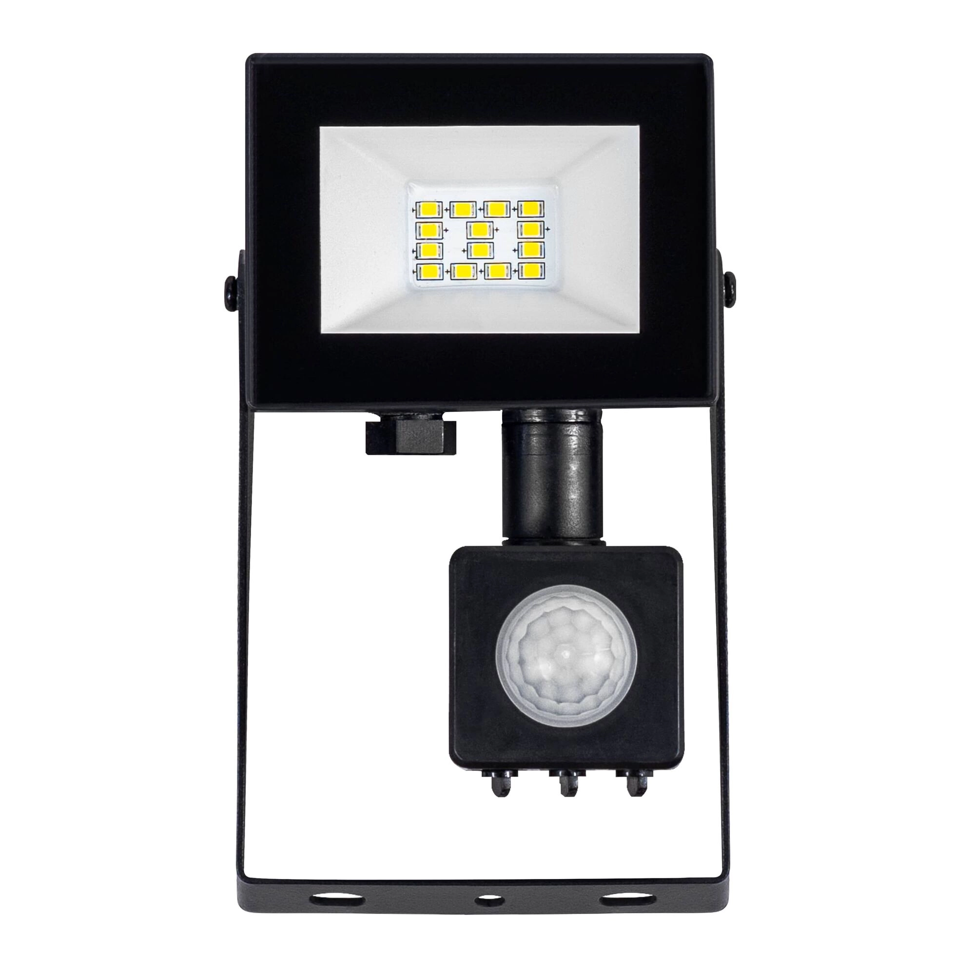 Kompakt udendørs LED‑projektør MODEE E‑series med sensor tilbyder 10 W effekt, 800 lm lysstrøm og en bred 120° strålevinkel. Den leverer koldt hvidt lys 6000K, er modstandsdygtig takket være IP54 og tænder automatisk ved bevægelse via PIR‑sensor. Ideel til indkørsler, haver, terrasser og gårdspladser.