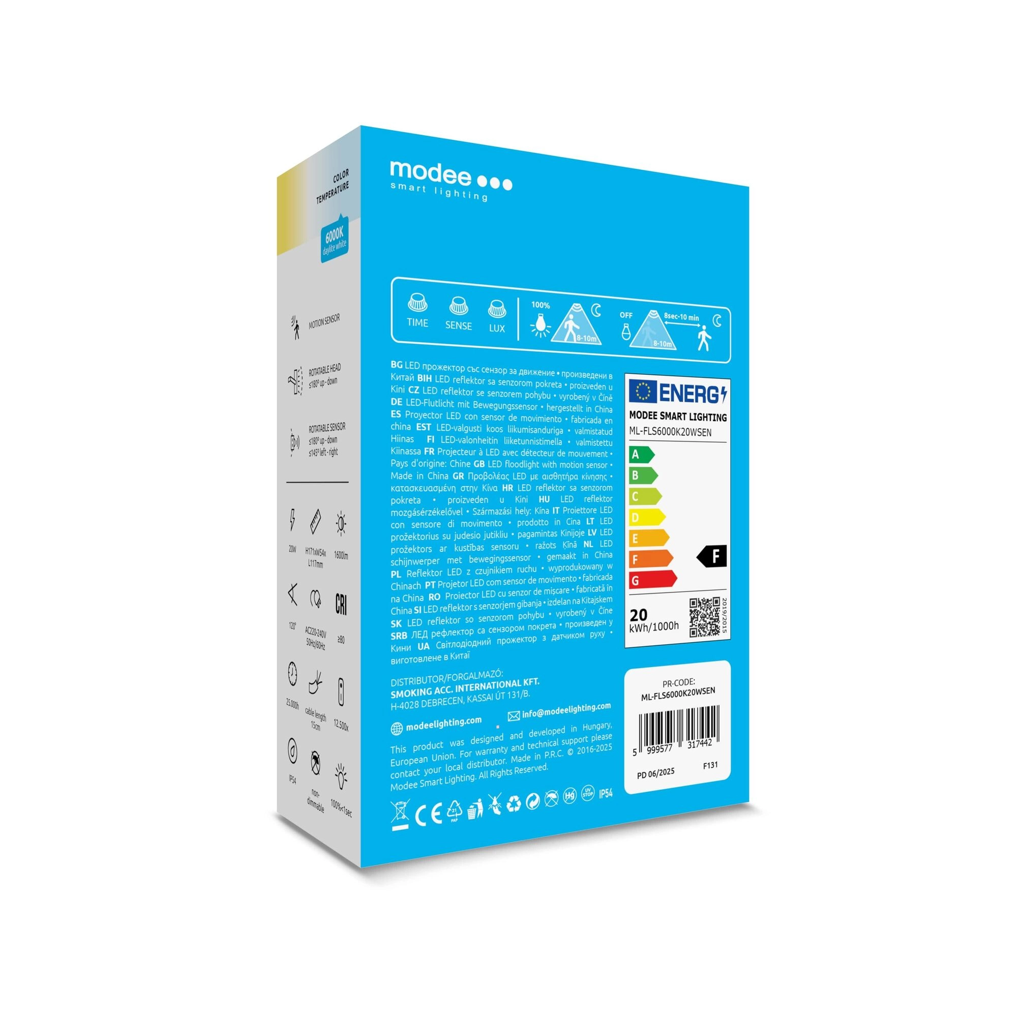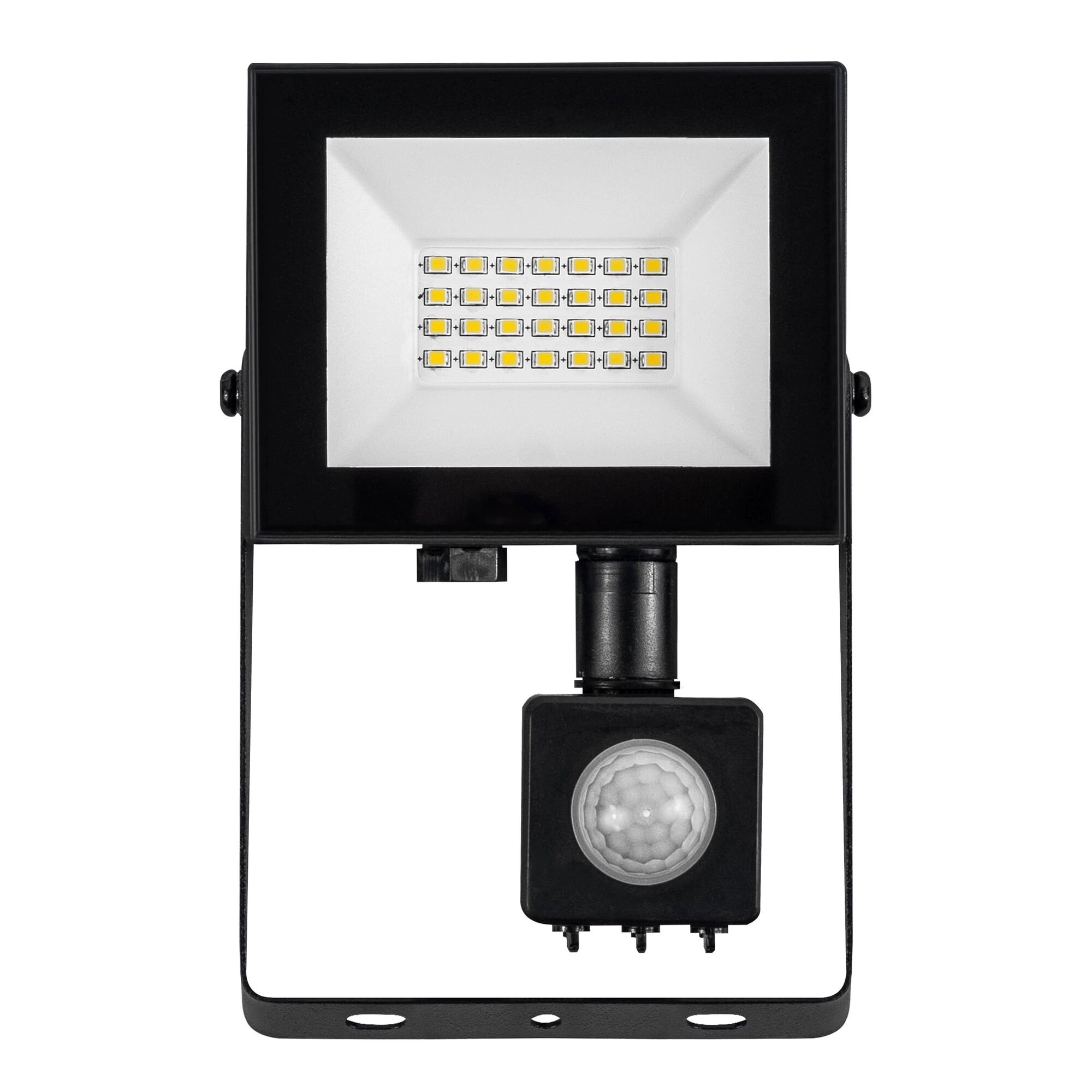 LED-projektøren MODEE E‑series med sensor er et ideelt valg til belysning af indkørsler, indgange, mindre haver, terrasser eller gårde. Takket være lysstyrken på 1600 lm og koldt hvid farve 6000 K leverer den klart, kontrastfuldt og overskueligt lys for sikker færdsel efter mørkets frembrud. Den robuste konstruktion med IP54 beskytter mod støv og stænk og egner sig til helårs udendørs brug.