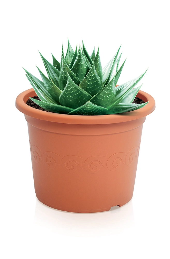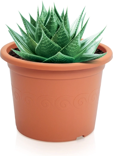 Praktisk plastisk urtepotte i terrakottafarve med en diameter på 9 cm er ideel til mindre planter, krydderurter og sukkulenter. Takket være de kompakte mål passer den til vindueskarme og små hylder, og det holdbare materiale gør den velegnet til både indendørs og udendørs brug. Den tilbyder lav vægt, nem vedligeholdelse og effektiv dræning med en anbefalet underskål på 9,8 cm.