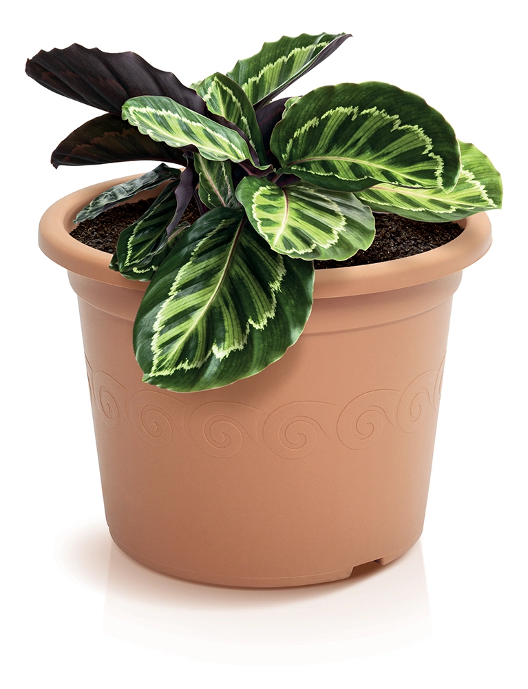 Fin dekoration og den naturlige terrakottaton passer til enhver indretningsstil og falder naturligt ind i udemiljøet.