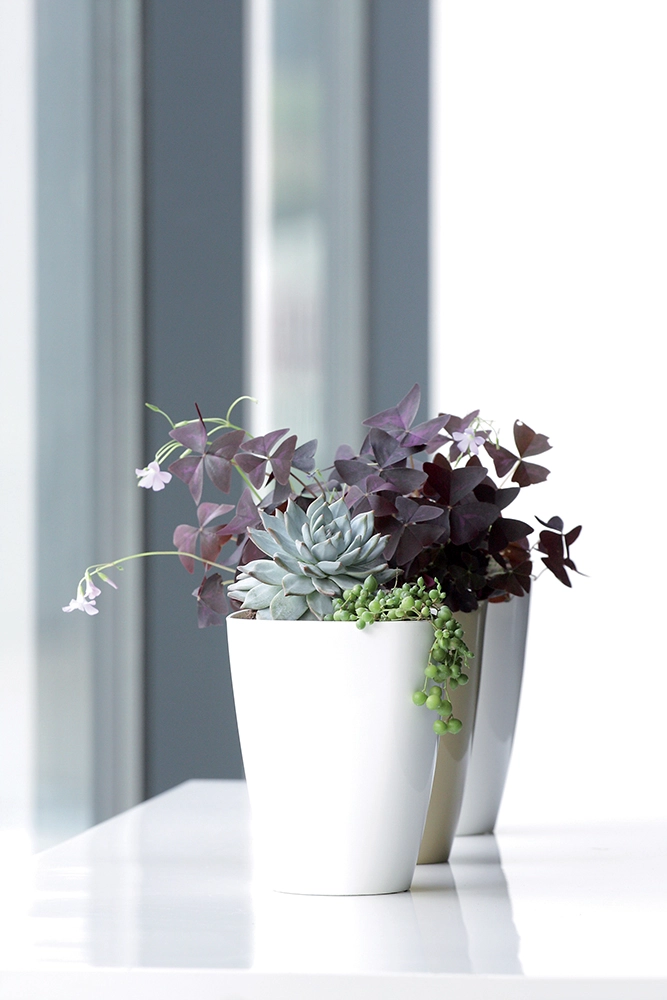 Den moderne firkantede form og det rene design passer perfekt til forskellige typer arrangementer i hjemmet, på terrassen og i vindueskarmen.